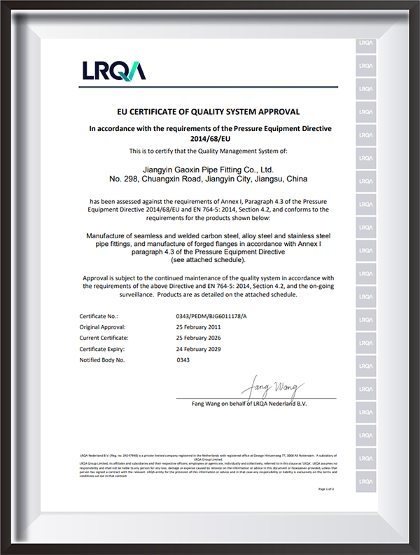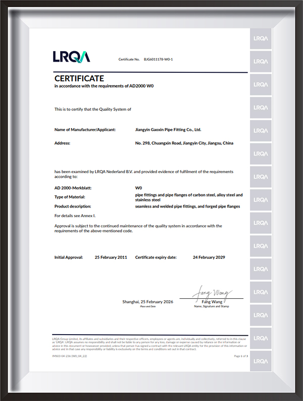 | Certificado | PED, AD2000, EAC, ABS, BV, DNV, NORSOK M650, ISO9001, ISO14001, ISO45001, etc. |